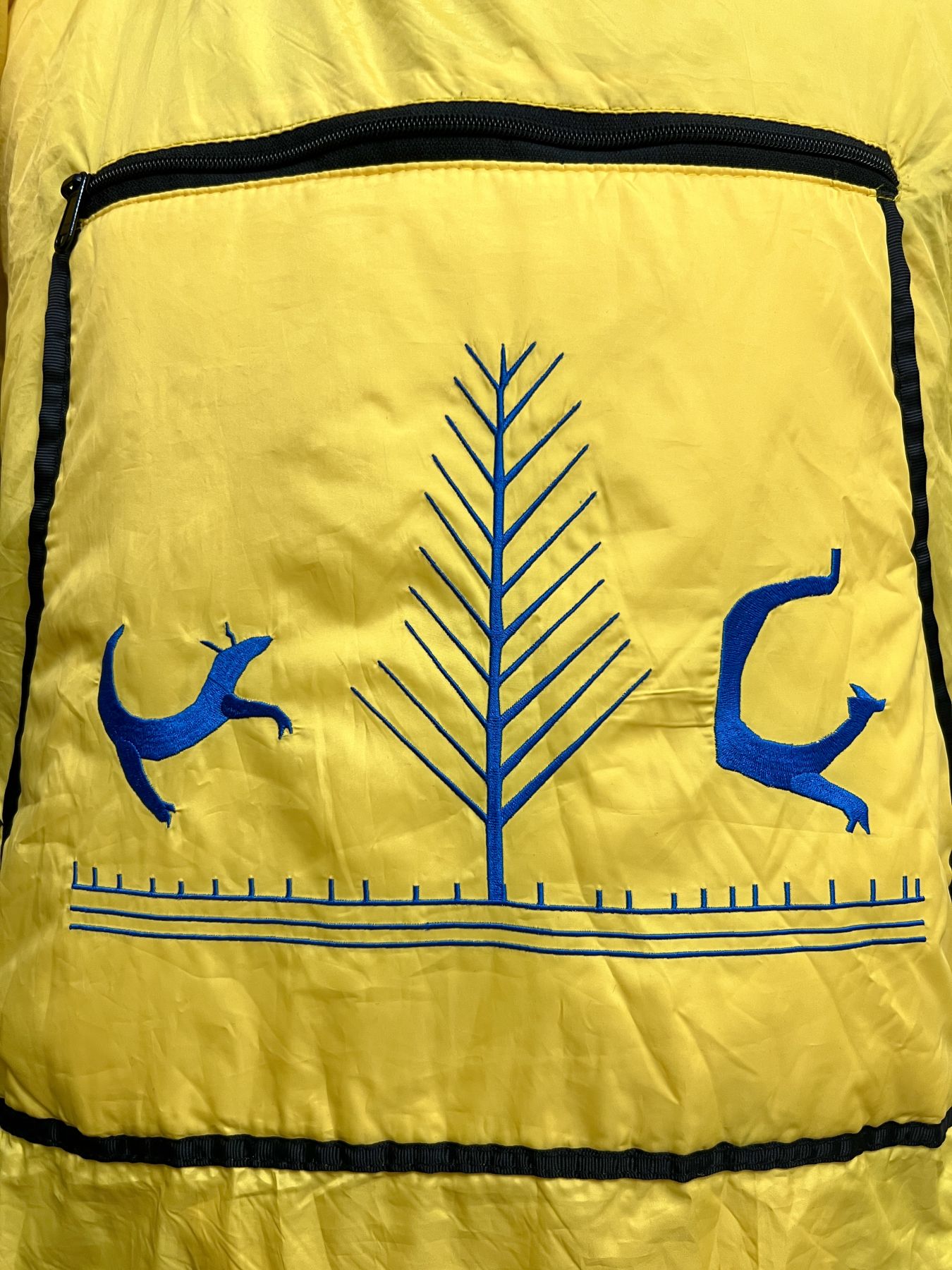 Яскраво жовтий з темно блакитною вишивкою, як чисте блакитне небо і лани стиглої пшениці.