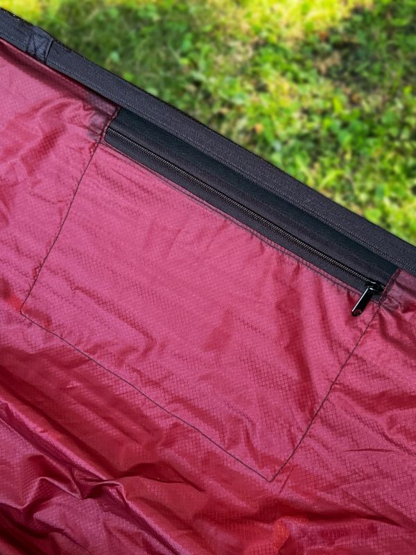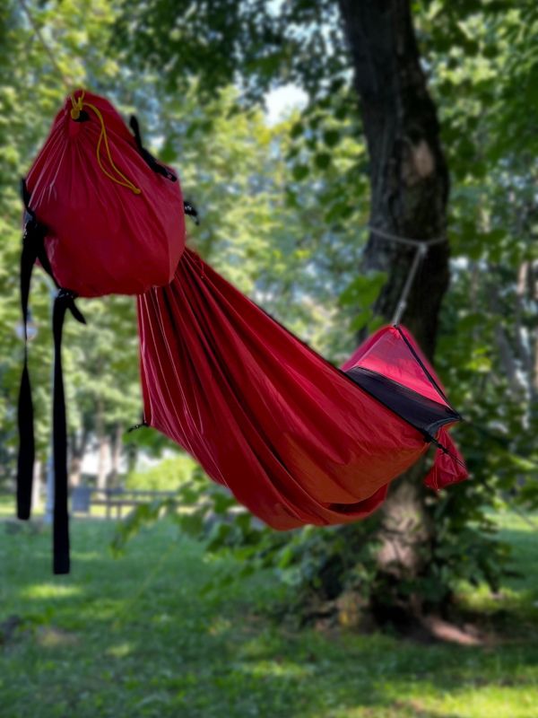 Москітна сітка ховається в спеціальну підвісну зовнішню кишеню. Також є внутрішня кишеня на блискавці, вшита в центральній частині гамака.