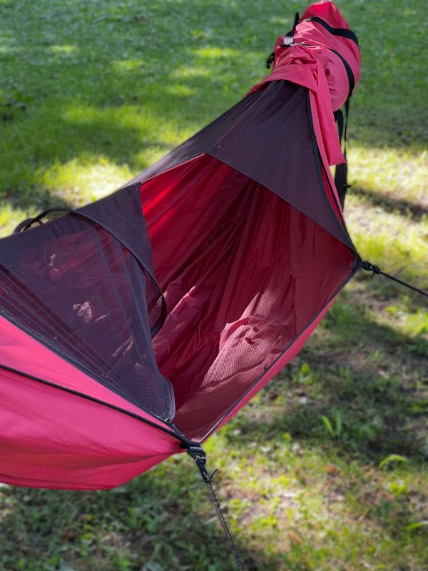 Досить вдала модель, зроблена з двох шарів легкої та міцної тканини. Обидва шари між собою прошиті стропою, виключаючи надриви та розтягнення тканини. У підвісі гамака використовується конькова мотузка. У підвішеному стані утворює форму човника. Москітна сітка ховається в спеціальну підвісну зовнішню кишеню, ще є внутрішня кишеня на блискавці, вшита в центральній частині гамака. Вшиті чотири петлі з півкільцями від woojin, для стабілізації гамака. Дуже просто підвішується та швидко складається.