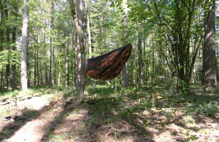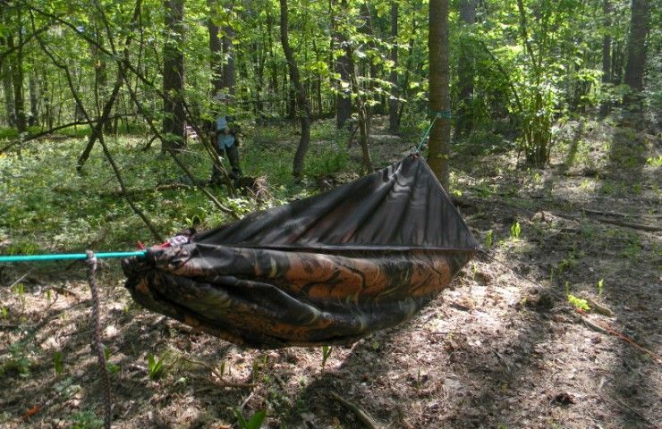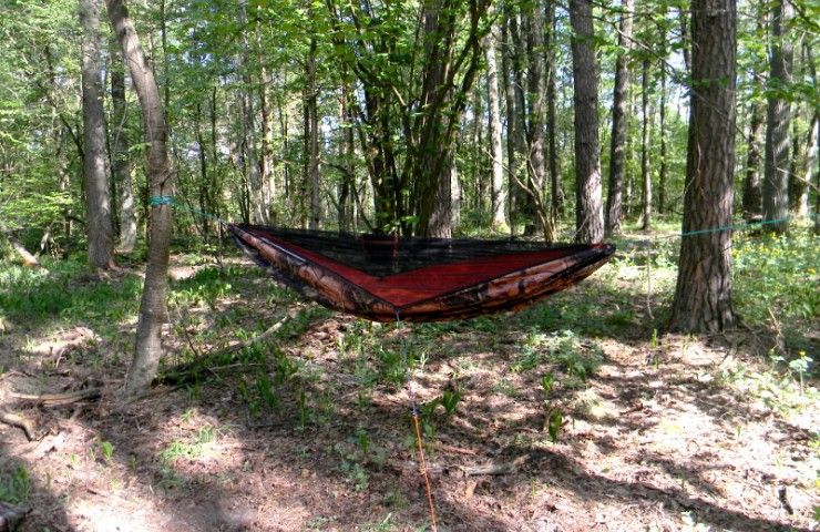 Всі елементи підв'язані до своїх точок кріплення, що значно скорочує час установки гамака Putnik. Рекомендуємо докупити пінку-каремат.