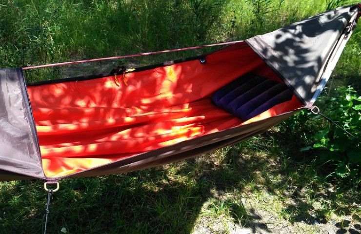 Досить вдала модель, зроблена з двох шарів легкої та міцної тканини. Обидва шари між собою прошиті стропою, виключаючи надриви та розтягнення тканини. У підвісі гамака використовується конькова мотузка. У підвішеному стані утворює форму човника. Москітна сітка ховається в спеціальну підвісну зовнішню кишеню, ще є внутрішня кишеня на блискавці, вшита в центральній частині гамака. Вшиті чотири петлі з півкільцями від woojin, для стабілізації гамака. Дуже просто підвішується та швидко складається.