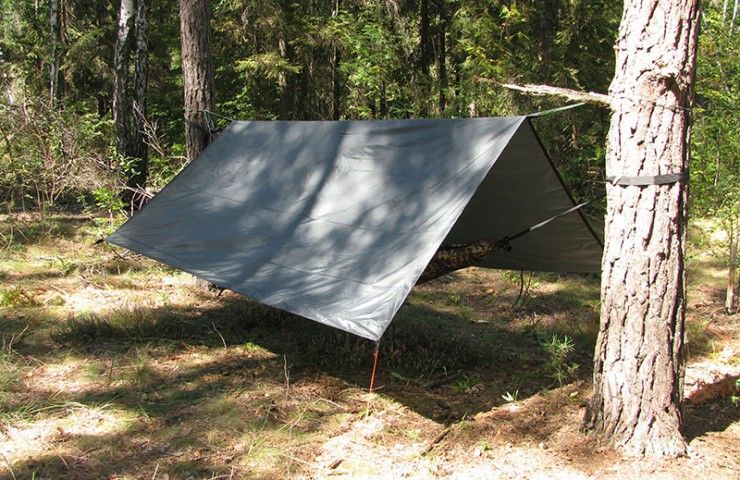 Зроблений із водовідштовхувальної тканини. Десять півкілець (петель): чотири по кутах, шість по сторонах. Кути посилені вставками. У центральній частині тенту із зовнішнього боку є петля для підвісу, посилена пришитою вставкою для виключення надривів основної тканини. Місце з'єднання тканин проклеєні.