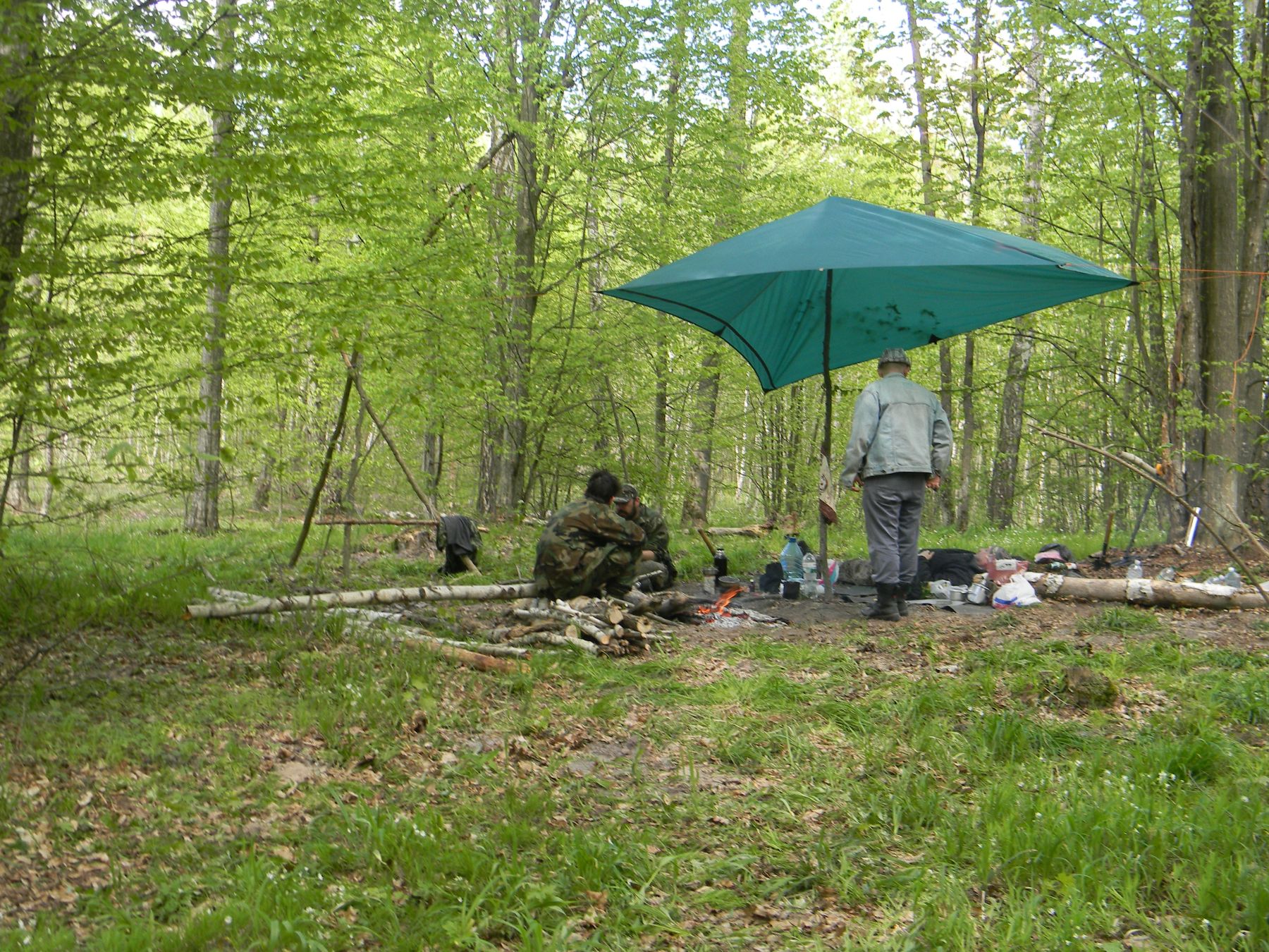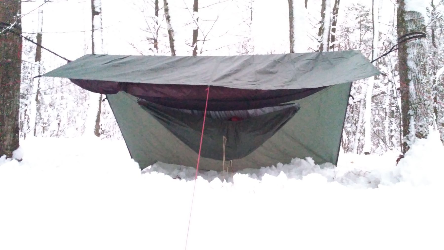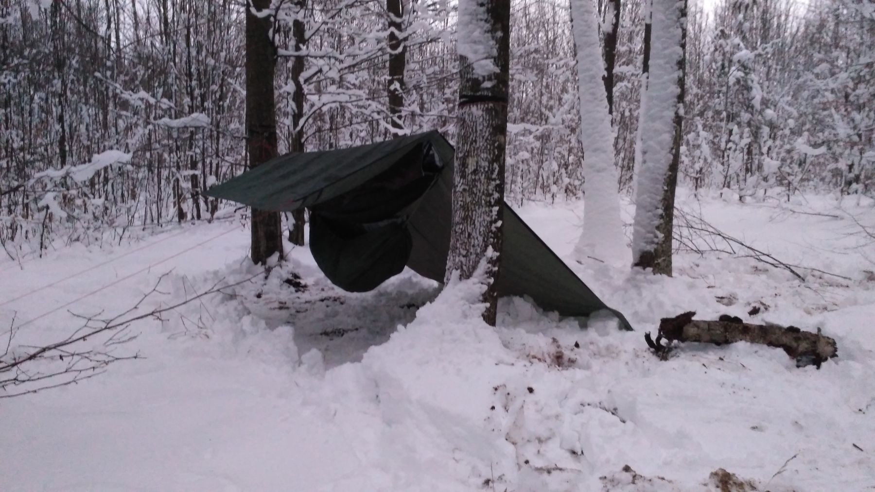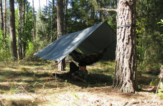 Зроблений із водовідштовхувальної тканини. Десять півкілець (петель): чотири по кутах, шість по сторонах. Кути посилені вставками. У центральній частині тенту із зовнішнього боку є петля для підвісу, посилена пришитою вставкою для виключення надривів основної тканини. Місце з'єднання тканин, оброблене спеціальним водовідштовхувальним просоченням від Berloga.