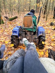 Сзади у тракторца был просто гиганский прицеп, в котором на наваленной горе сучьев и коряг аки баба на самоваре восседала, собственно, баба.